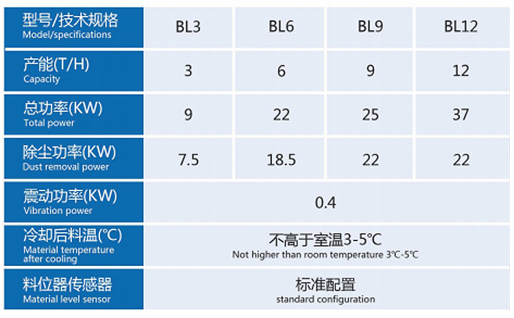冷却塔利用逆流冷却原理对高温、高湿的颗粒进行冷却,避免了冷风与热料直接接触而产生骤冷现象,因而能防止颗粒产生表面开裂,同时由于采用闭风器进料,且进风面积大,因此冷却效果显著;采用滑阀往复式排料机构,运动平稳、可靠,残留小;能耗低、操作简便;冷却后成品温度不高于室温3℃-5℃;适用于颗粒物料的冷却。